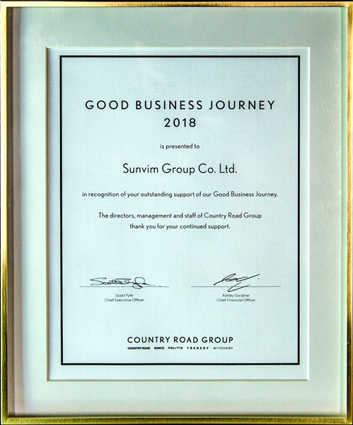 孚日獲COUNTRY ROAD “全球最佳商業(yè)伙伴獎(jiǎng)”